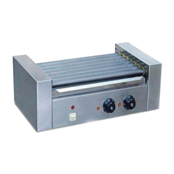 9 rodillos con teflón, doble termostato con focos indicadores, capacidad de 18 salchichas, motor eléctrico para giro de rodillos.