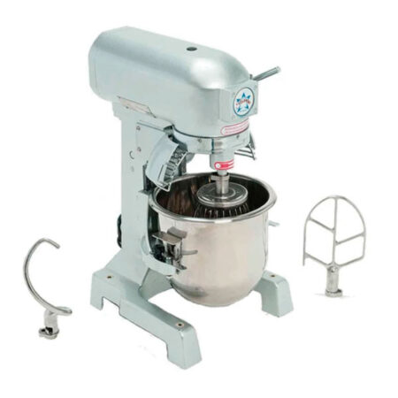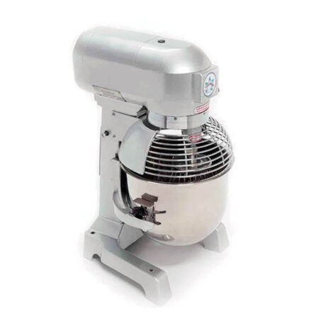 Tazón de acero inoxidable de 20 litros, elevador de tazón, con 3 velocidades (105, 180 y 425 r.p.m.), motor con potencia de 1,100 w (1.5 h.p) capacidad máxima de harina de 3 kg., sistema de transmisión de engranes, incluye 3 accesorios (gancho, paleta y globo) para todo tipo de batidos, con rejilla protectora de tazón con microswitch que hace que pare al levantarlo.